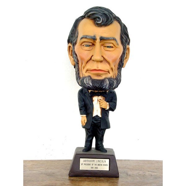 Abraham Lincoln, The Great Emancipator, was the 16th president of the United States (1861–65), who preserved the Union during the American Civil War and brought about the emancipation of the slaves. This fun caricature statue of Lincoln is made from fiberglass, has an exaggerated head above a small body, and measures 18”H.