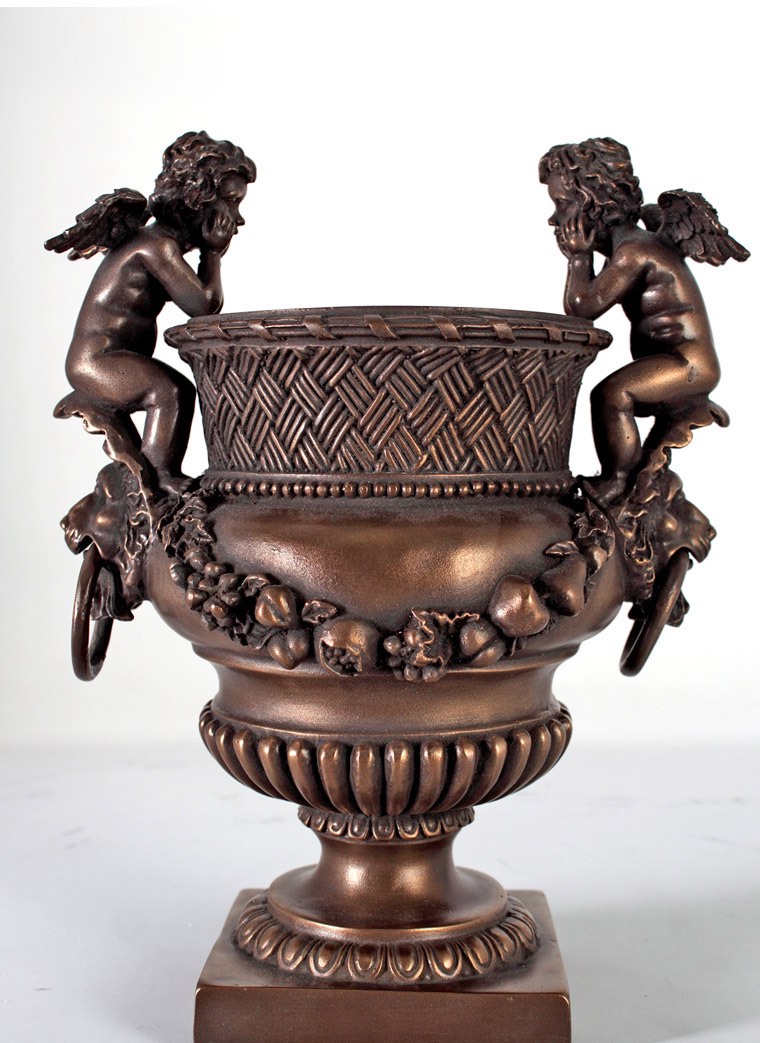 Different life size statue, fiberglass statue, angel and lion urn, fiberglass urn, bronze roman vase, roman vase with angels and lions