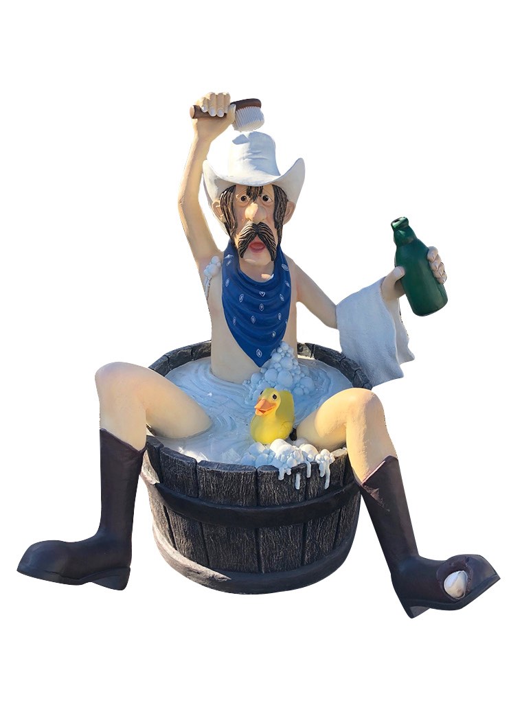 life size statue, fiberglass statue, people figurines, cowboy statue, bathing cowboy statue, wild west people sculptures, western cowboy figurines
