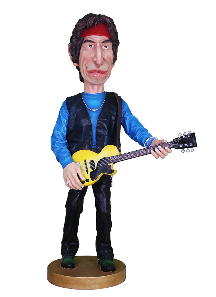 Different life size statue, fiberglass statue, famous people figurine, famous singer caricature, keith richards statue, rock n’ roll musician sculpture