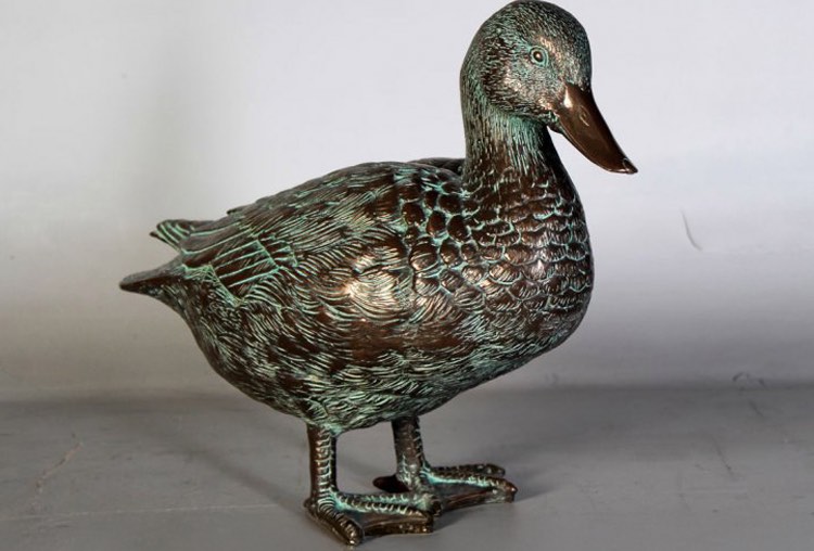 Male Mallard Duck Statue in a Greenish Bronze Finish. Made of fiberglass