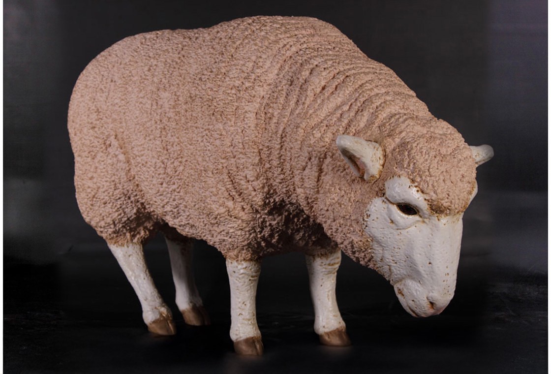 Fiberglass Merino Ewe Head Down Statue.