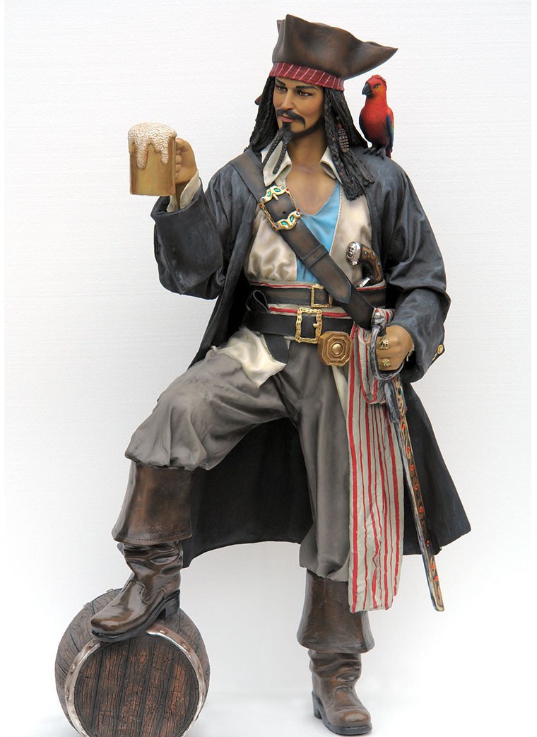 life size Statue, fiberglass Statue, Male Pirate Figurine, Corsairs Statues, Pirates from Tortuga Figurine, Pirate with Beer Statue, Pirate Nautical Theme Props