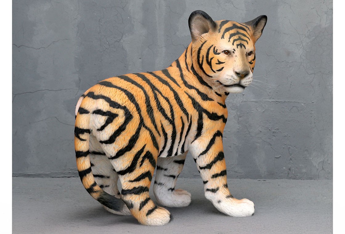 Life Size Standing Tiger Cub Statue made of Durable Fiberglass Resin Material;